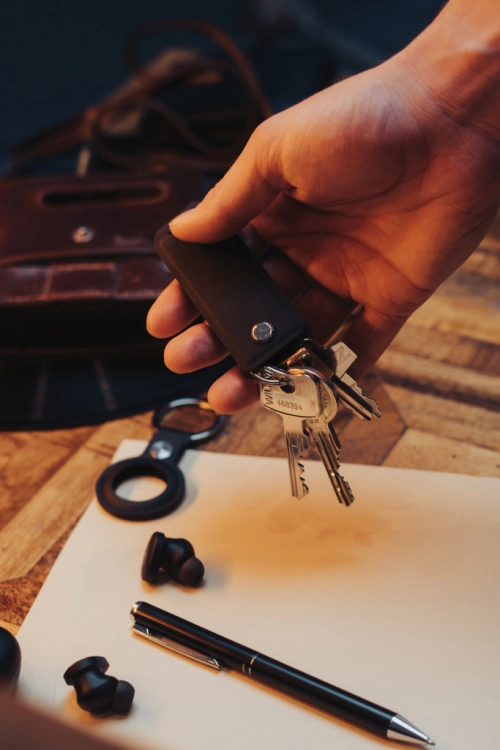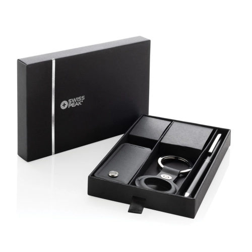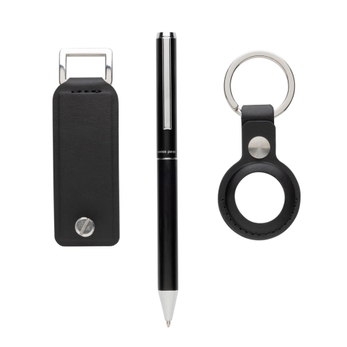 Swiss Peak Tula RCS certified key organiser, practical AirTag Holder and recycled aluminium Pen. Crafted for efficiency and style, the key organiser keeps your keys in check (for max 4 keys), while the AirTag Holder ensures you never lose track of your valuables. Plus, jot down your notes with the recycled aluminium pen. Elevate your everyday carry with this perfect set. Made with RCS (Recycled Claim Standard) certified recycled materials. RCS certification ensures a completely certified supply chain of the recycled materials. This product contains 7% RCS Certified Recycled PU and 8% RCS Certified Recycled Aluminium.